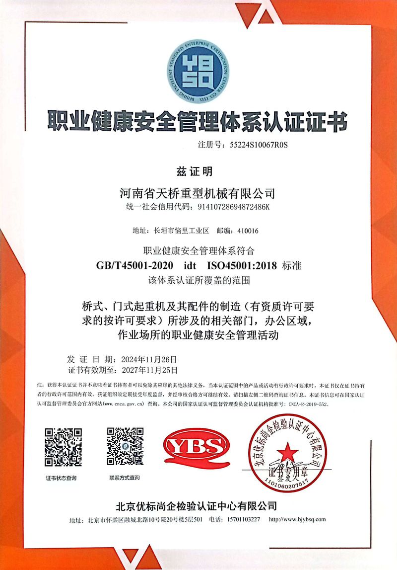 職業(yè)健康安全管理體系認證證書(shū)