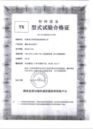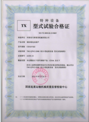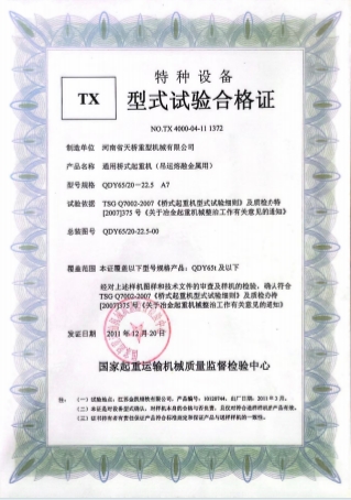 型式試驗合格證